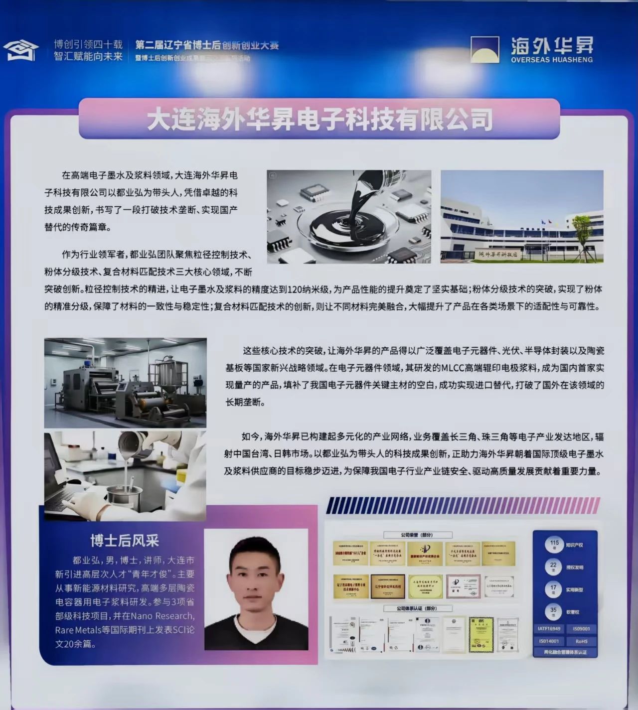 通過產學研不斷深耕,海外華昇已獲得知識產權共計100項,其中授權發(fā)明專利22項、實用新型17項、軟件著作權35項,注冊商標3項。同時,海外華昇還通過了ISO9001/ISO14001/RoHS/IATF16949認證,海外華昇也是國內首家通過汽車行業(yè)質量管理體系IATF16949認證的電子漿料企業(yè)。